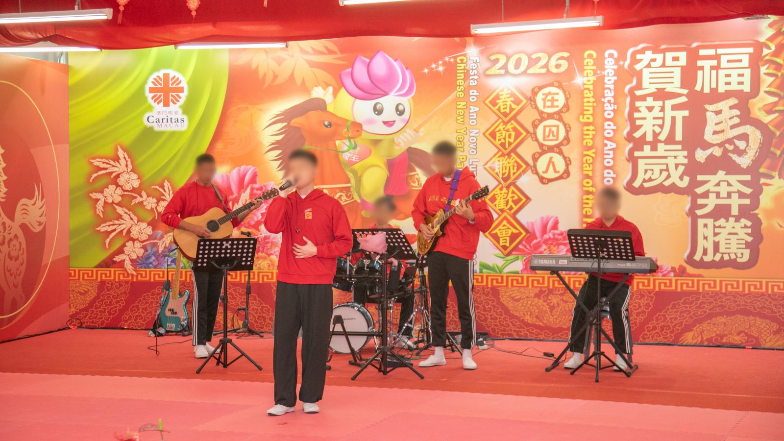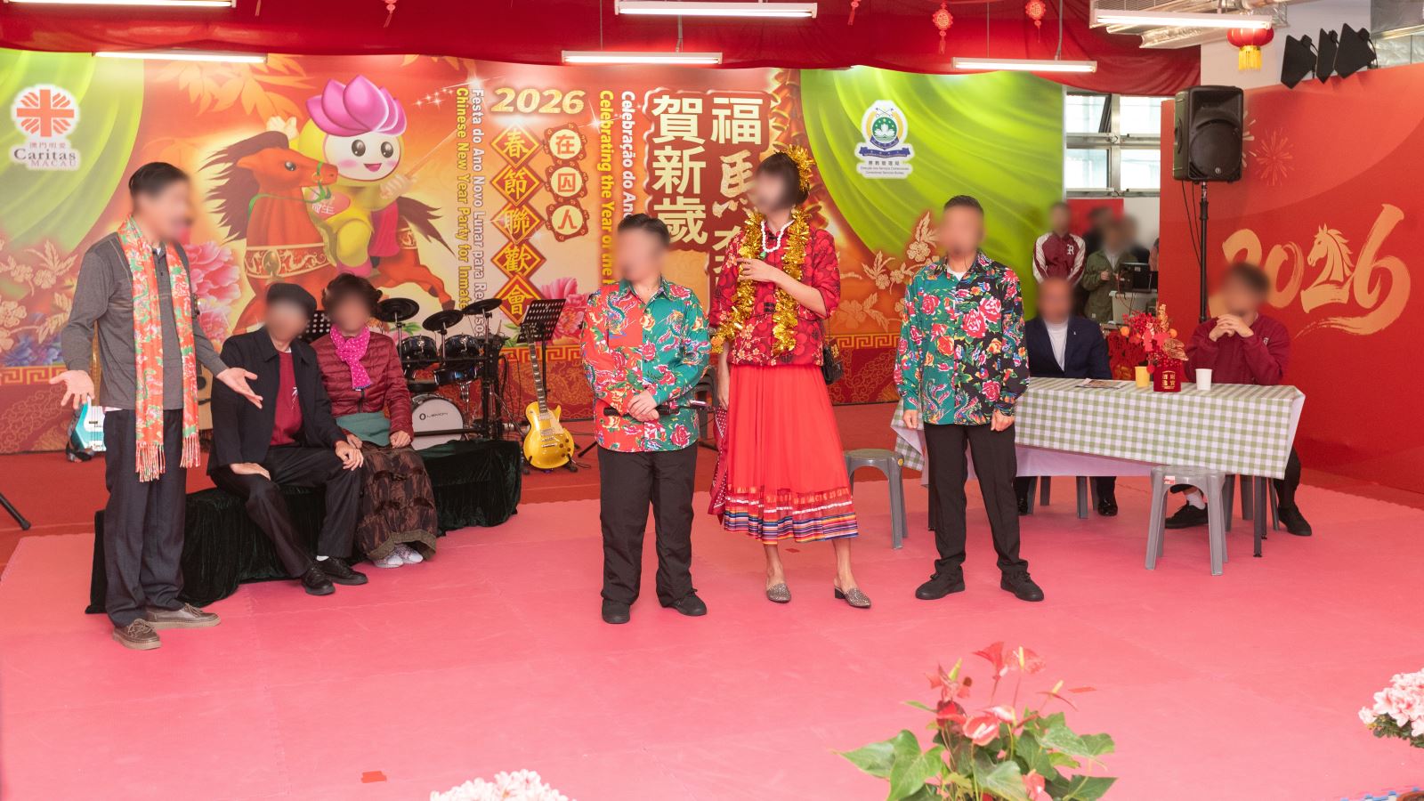 送蛇迎馬,新春將至,為了讓在囚人感受到來自社會的支持和溫暖,以及喜慶的節日氣氛,懲教管理局與澳門明愛繼續合作,在2月2日至5日期間,於路環監獄分批為在囚人舉辦春節聯歡會。