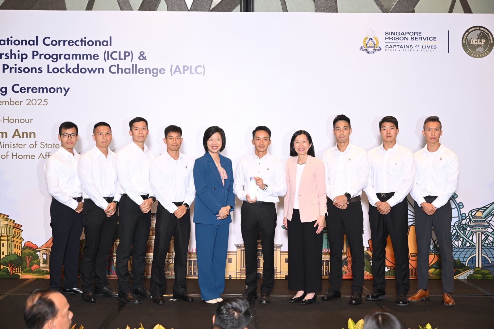 A equipa da DSC recebeu o prémio de campeão final da competição das mãos da Comissária Shie Yong Lee dos Serviços Prisionais de Singapura
